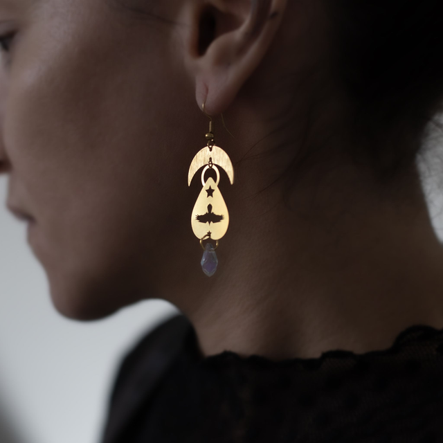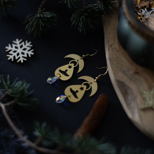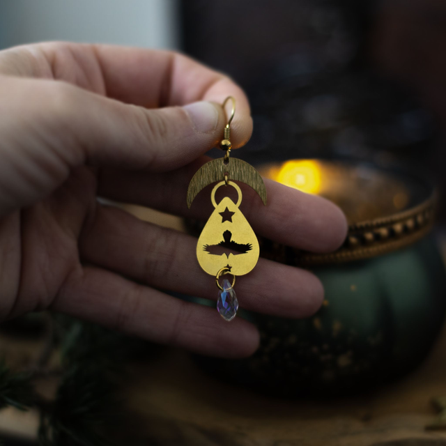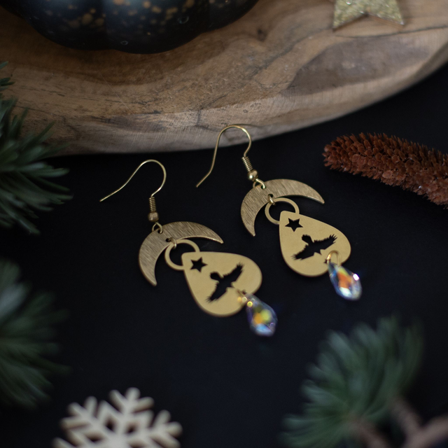 "L'Appel du Corbeau" boucle d'oreille en laiton en laiton - collection creepy winter
