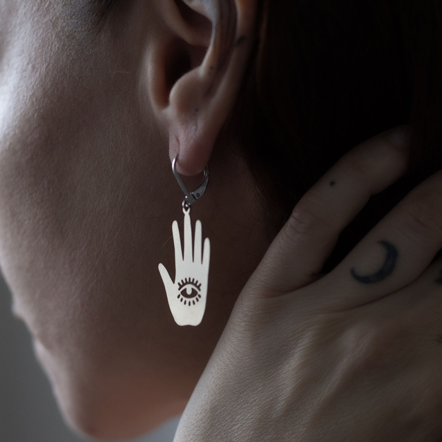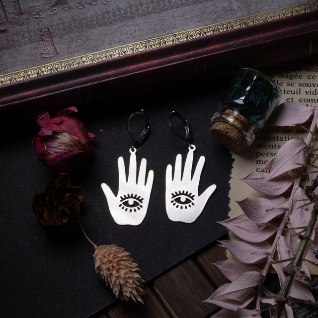 "Mano Mystica" boucle d'oreille en acier inoxydable