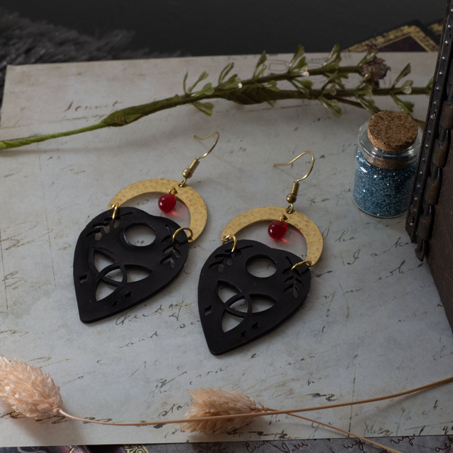 oui-yeah: la magie du ouija dans ses boucles en laiton et plastique. Approches-toi promis elle ne te parleront mais feront de toi la plus