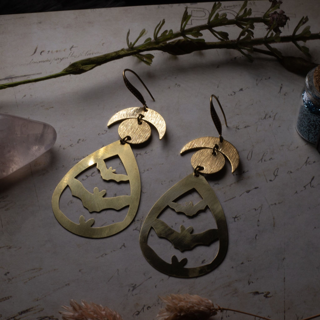 beauty bat : la magie des chauves-souris dans ses boucles tout en laiton.